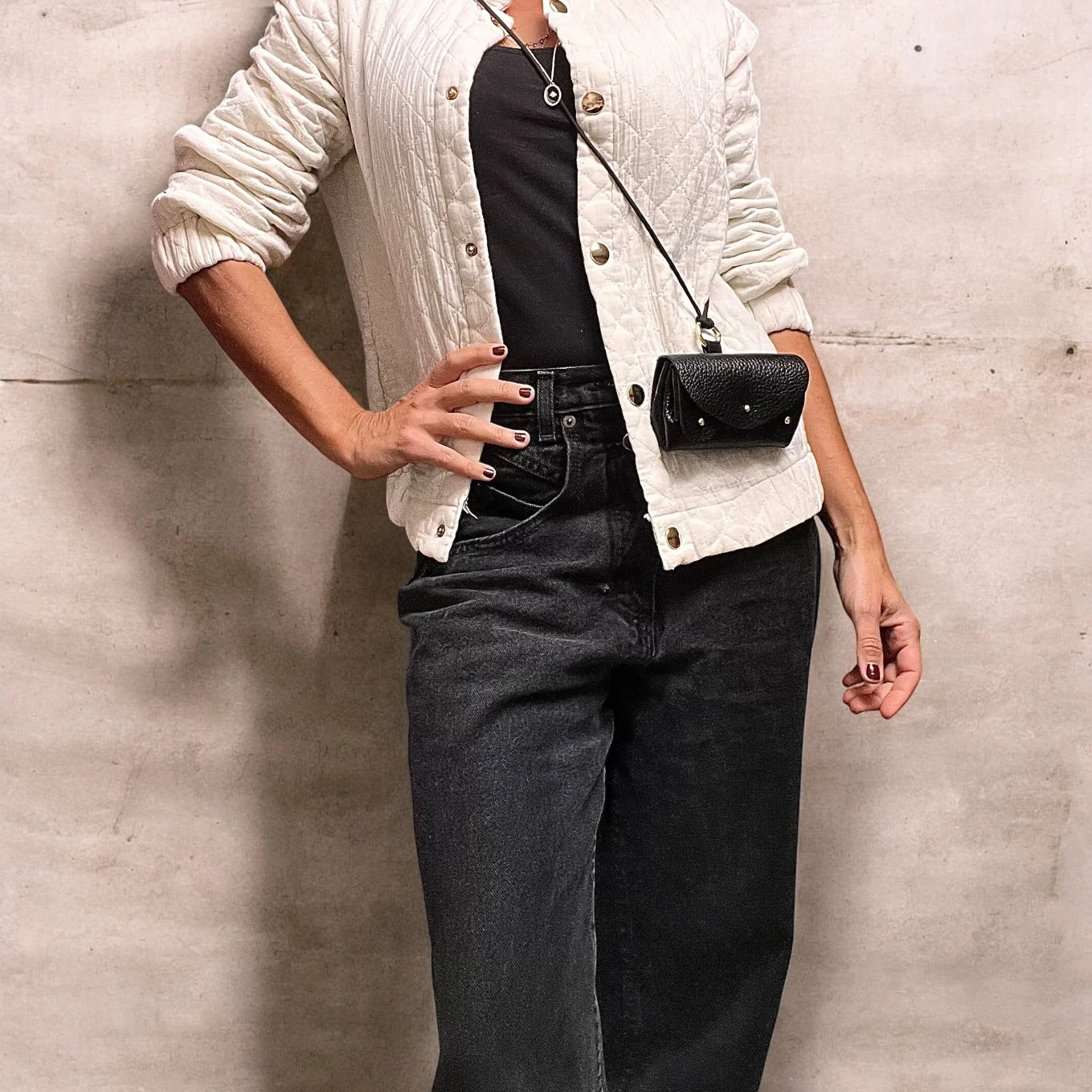 Ou bien portez-le comme un mini-sac en cuir avec un cordon coulissant.