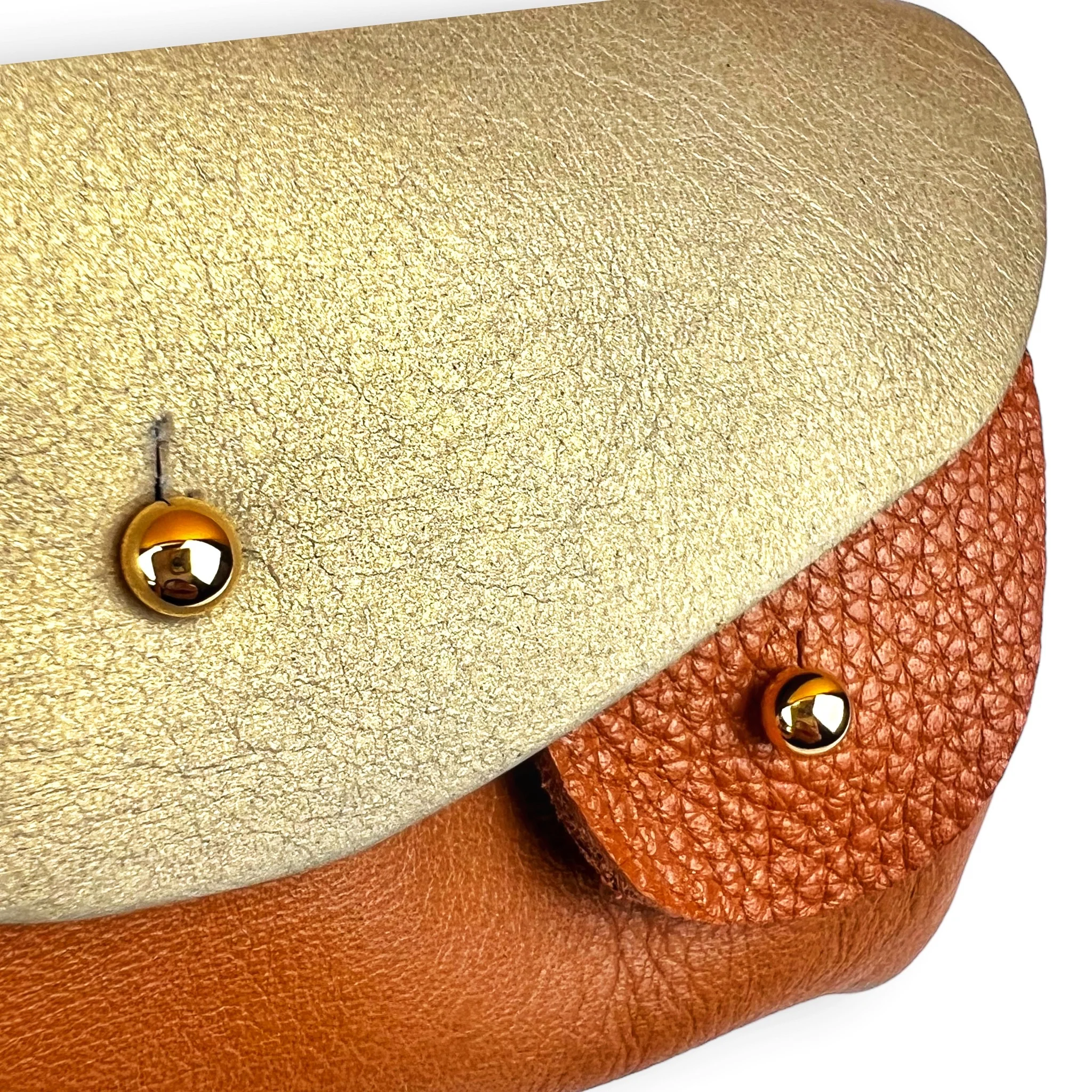 • Coloris beige reflets iridescents, cuir fauve, cuir caramel