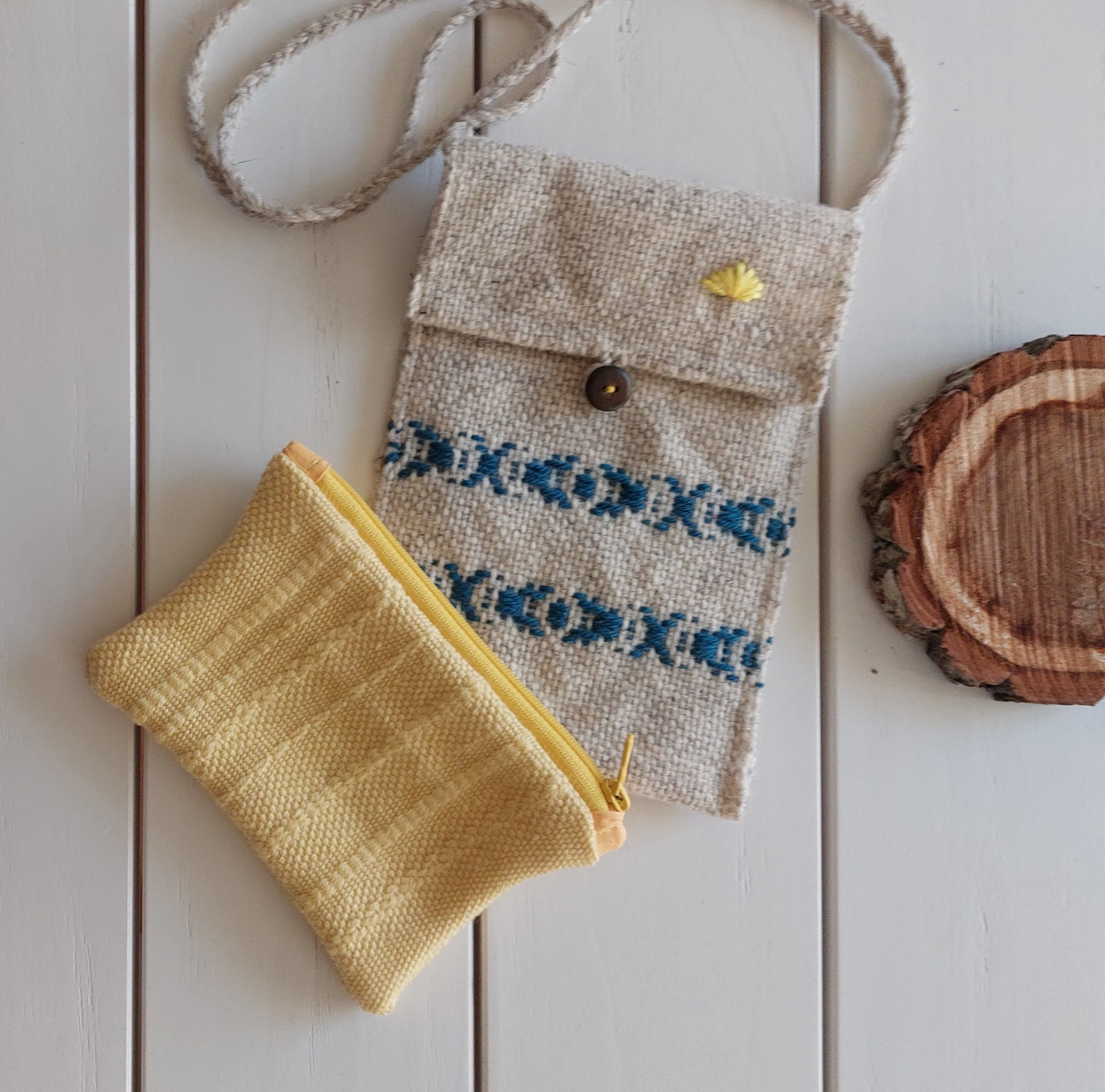 Confectionnée artisanalement par la tisserande d’art Myriam Dufour, ce porte-monnaie est un accessoire de maroquinerie utile et éco-responsable.