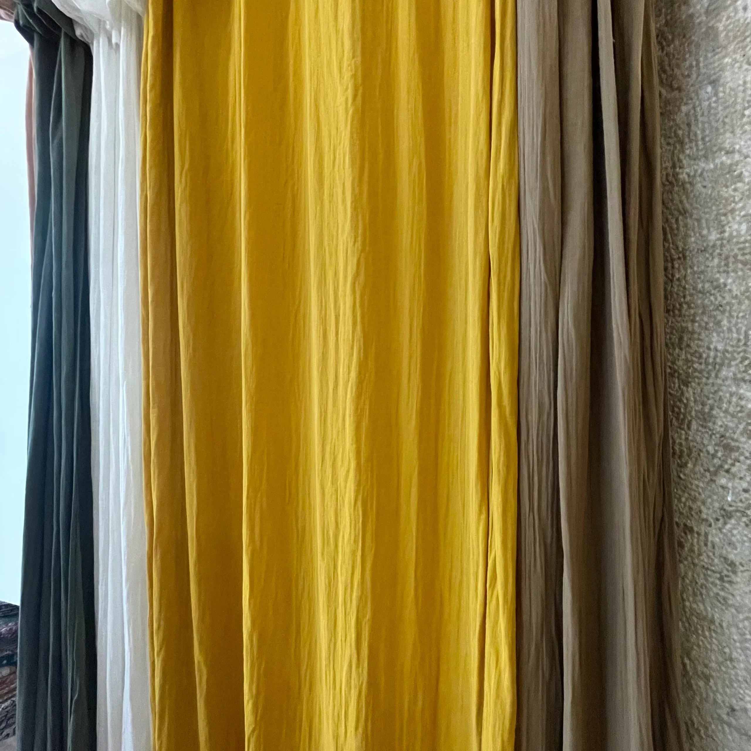 Ce rideau en voile de coton Safran replié sublimera votre maison par ses couleurs douces et sa légèreté. Idéale dans le salon ou dans une chambre à coucher !