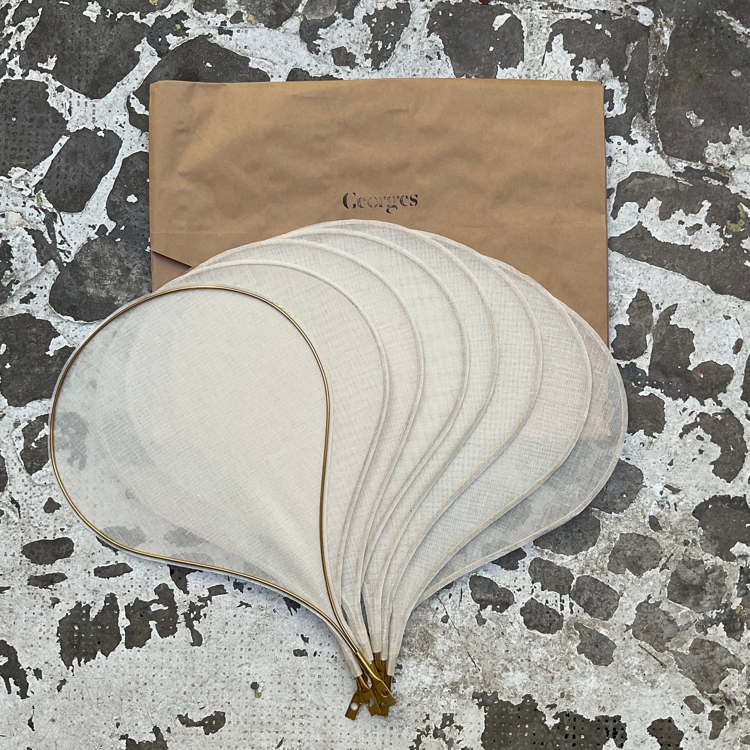 La suspension Pale précieuse est fabriquée au chateau de Méritein, la manufacture béarnaise de la marque. Chaque pétale est entièrement fait à la main à partir d’un arceau de laiton sur lequel est tendue une toile à beurre de coton peinte à la main avec un mélange de pigments naturels. Tous les éléments de la suspension Pale précieuse sont sourcés en France.