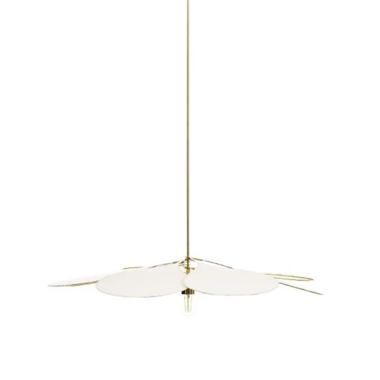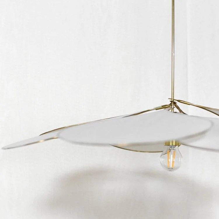 À l’épure d’un pétale en forme de goutte, Pale ajoute un hommage aux ventilateurs de plafond rétro des chambres à persiennes. Cette suspension joue subtilement avec la lumière, diffusant une clarté douce dans la pièce et des jeux d’ombres délicats au plafond. Ses 8 pétales, orientables, vous permettent de composer un jeu de lumières unique.