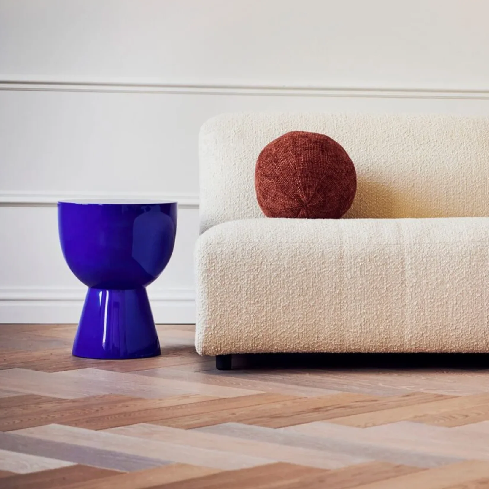 Ce tabouret existe en différentes teintes d’assises et de piétement.
