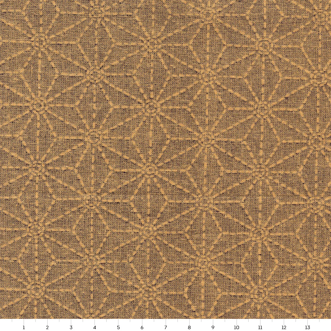 Tissu Japonais – Grandes Étoiles – Noir et Ocre – T128