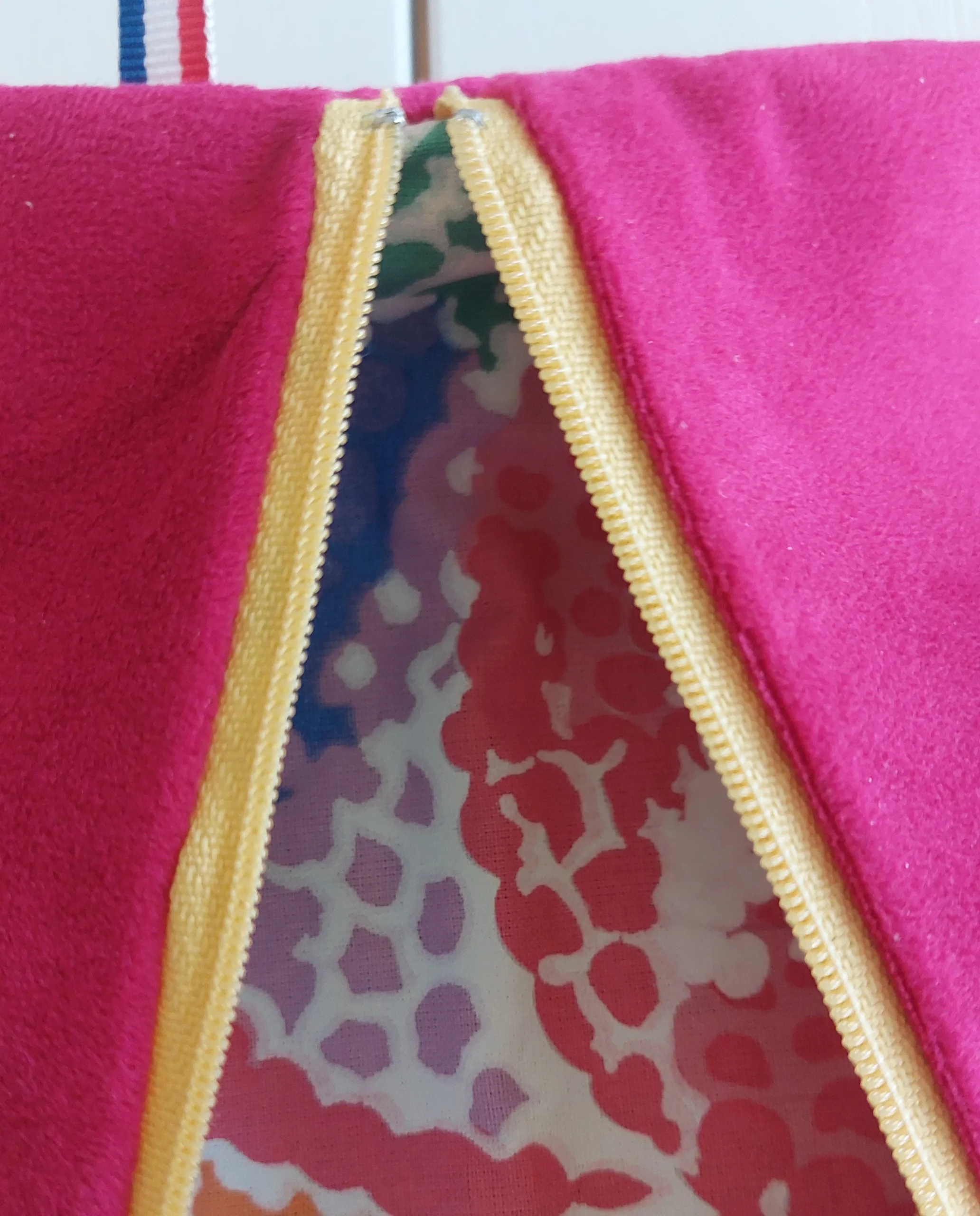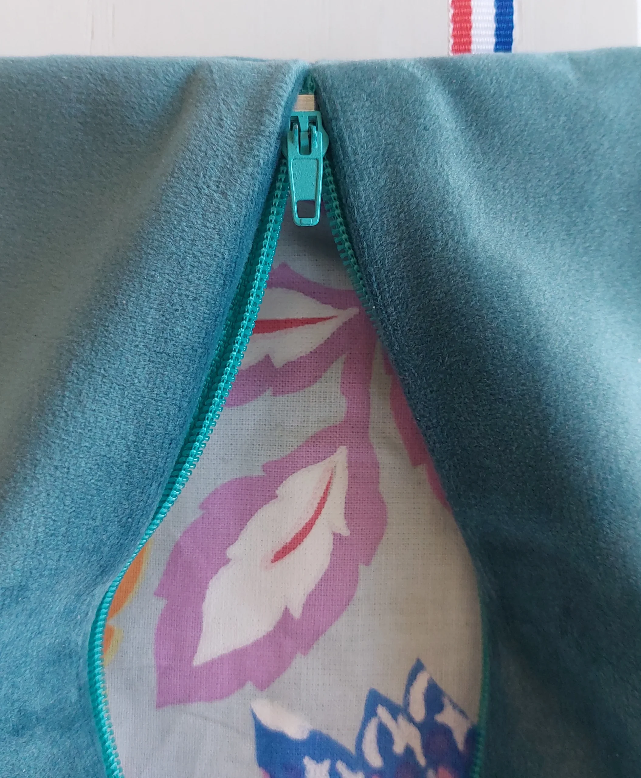 - Textiles upcyclés : extérieur tissu velours avec doublure intérieure en tissu coton