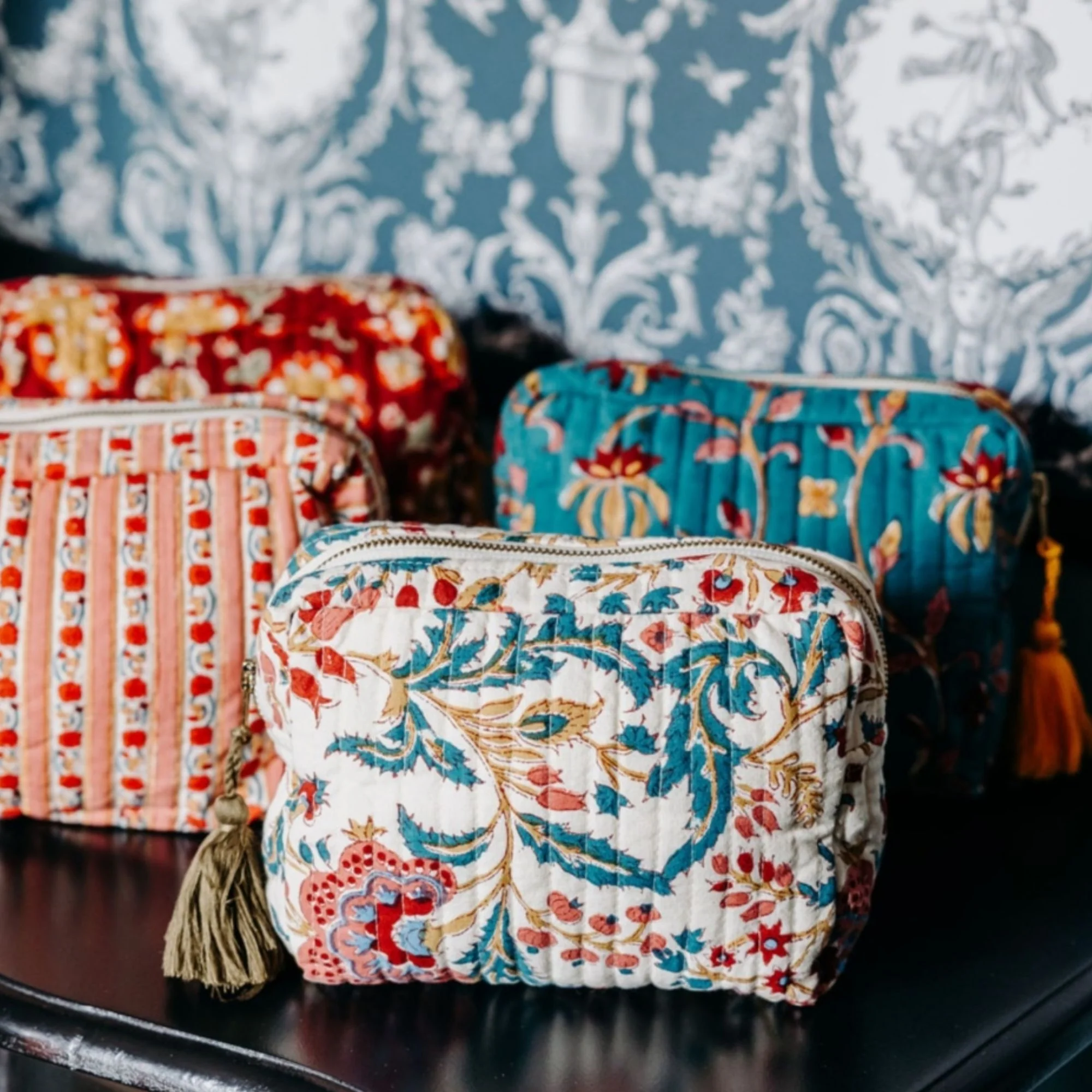 Cette grande trousse de toilette en coton avec intérieur plastifié allie esthétique et praticité. Grâce à ses quatre poches intérieures, elles permettent de ranger vos essentiels avec facilité.