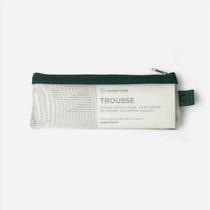 Une trousse pratique et design pour tous vos essentiels. Avec la trousse Mesh Papier Tigre, impossible de ne pas trouver une place pour vos essentiels du quotidien car elle est … transparente! Grâce à son format compact (8×22 cm), elle se glisse facilement dans un sac, une valise ou un cartable, et devient vite indispensable. Crayons, pinceaux de maquillage, petits outils de bricolage, câbles ou accessoires… tout trouve sa place dans cette trousse polyvalente.