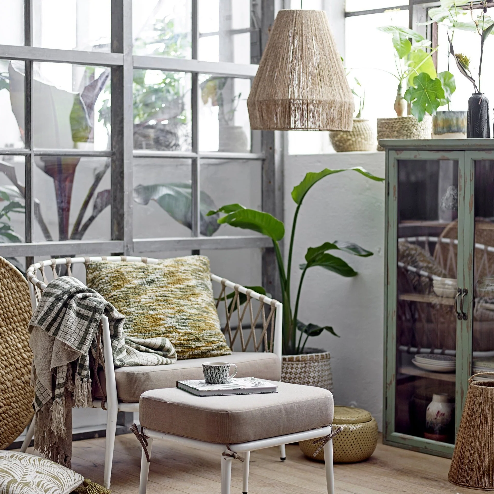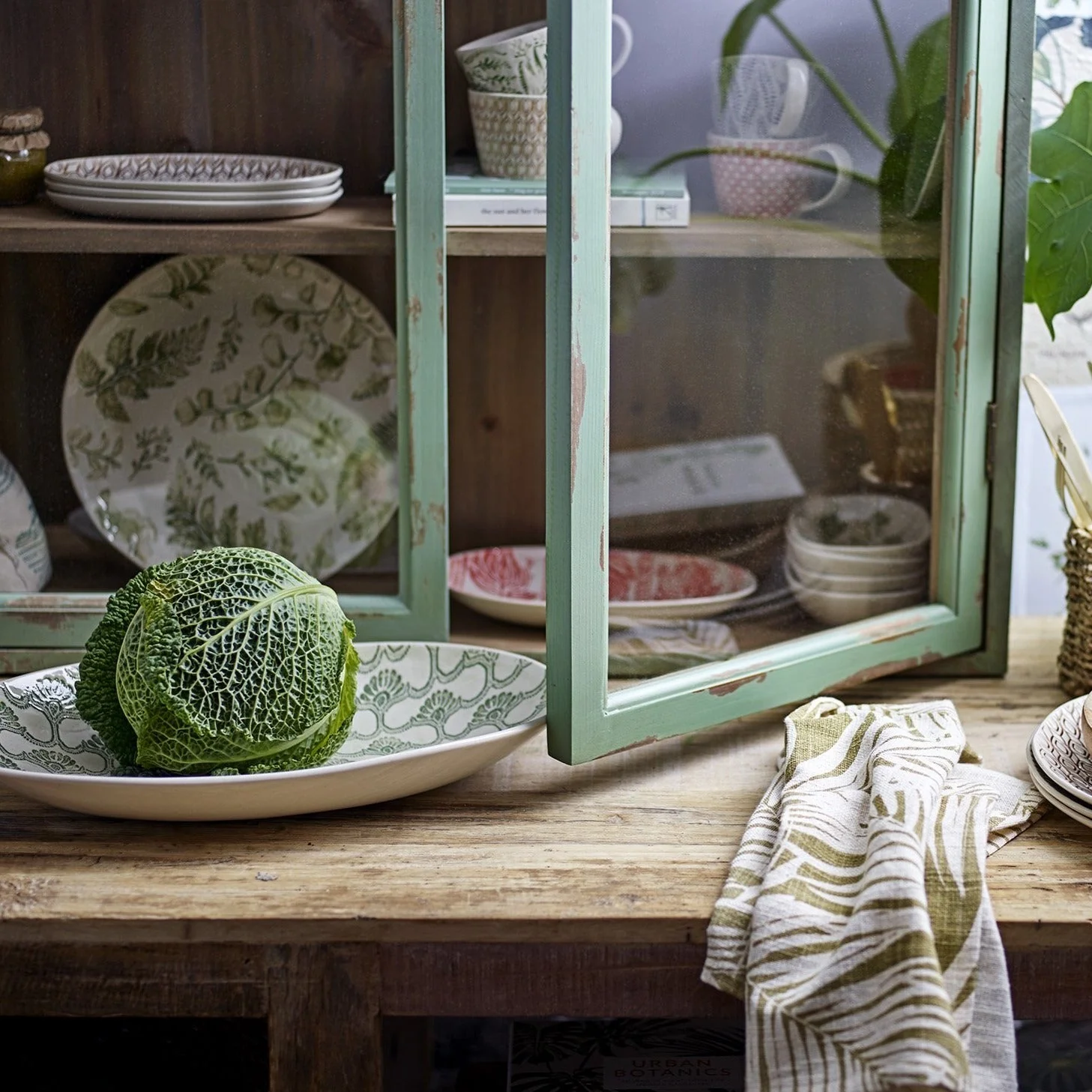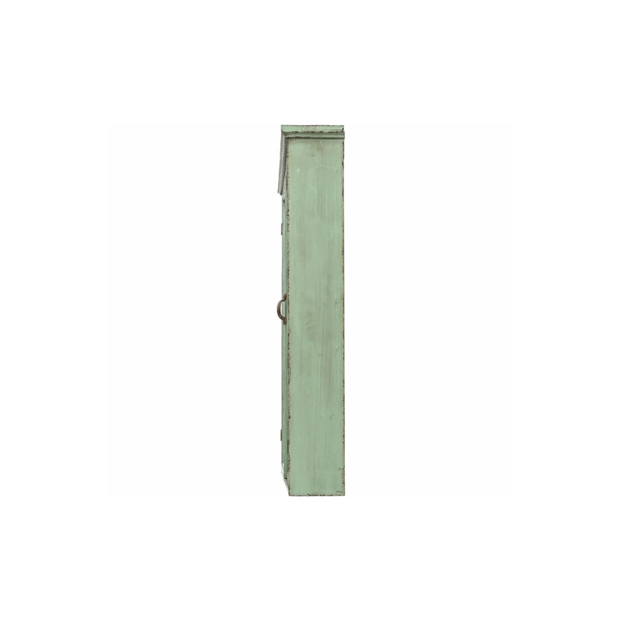 Cette armoire verte à l’aspect vieilli a beaucoup de charme. Ses portes en verre transparent lui donnent du caractère et permettent de mettre en valeur tout ce que vous y exposez : vaisselles, bibelots, livres…