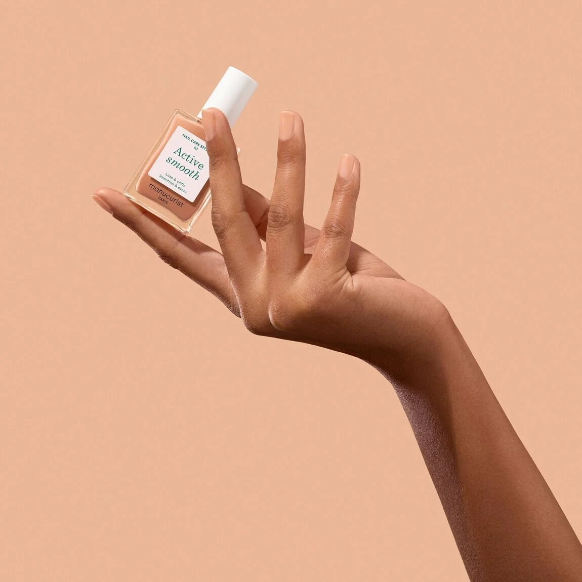 Hybrides entre soin et couleur, ce vernis all-in-one bio-sourcé à 80% vient lisser la surface de l’ongle et gomme instantanément les imperfections et les stries grâce à sa formule enrichie en fibres de ricin, Hexanal, AHA et Vitamine E.