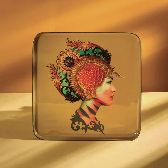 Plateau décoratif en métal entièrement fait à la main. Usage intérieur